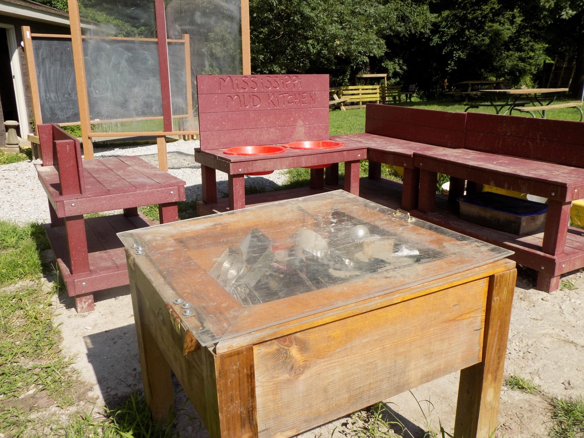 This spring TNI staff installed new equipment and updated some of the existing recreation for our natural play area. Before the update, our play area included the eagle’s nest, burrow, fossil dig, a climbing log, alligator pit, an amphitheater and a fire pit. In our newly updated play area, we have added Honey’s Hive, the Bobcat Walk, the Mississippi Mud Kitchen, a Human Sundial, an art station, the Geology Garden in memory of Judy Hoffman and a climbing wall. The Eagle’s Nest was moved and improved on and the fire pit was adjusted to accommodate larger groups.